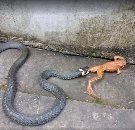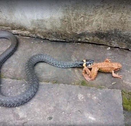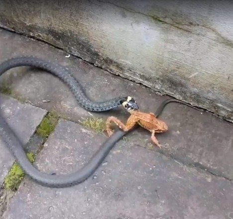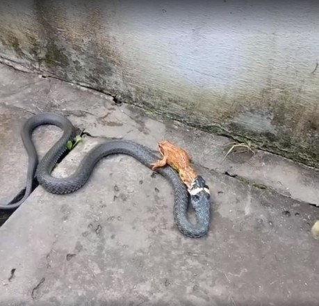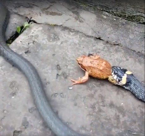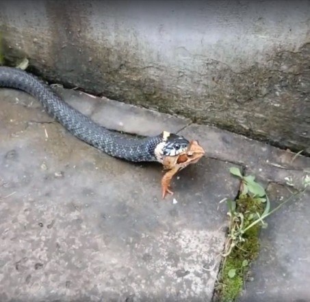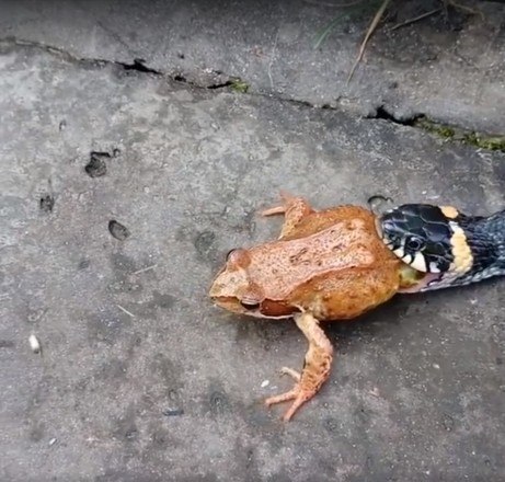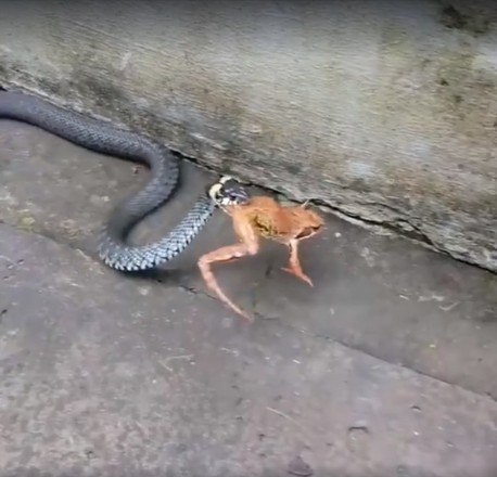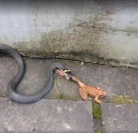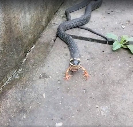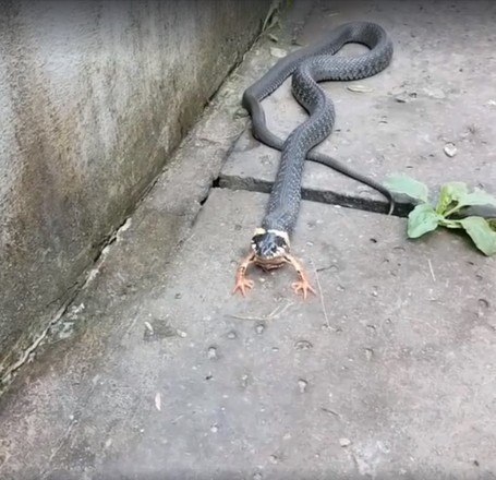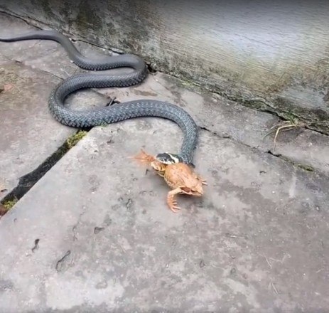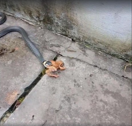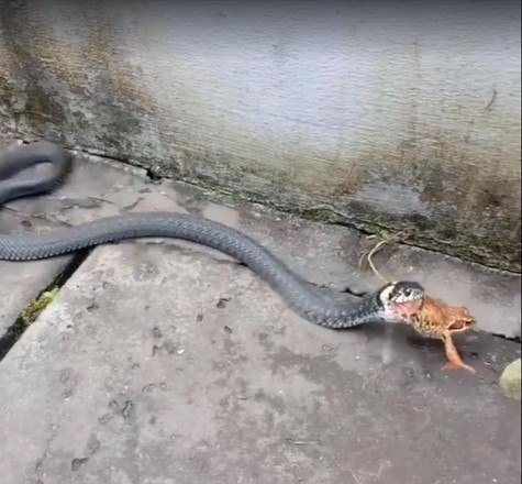 A natureza pode ser bastante brutal. É o que mostram essas imagens de uma cobra perseguindo, prendendo e engolindo um sapo vivo. O anfíbio tentou lutar pela vida, mas seus esforços foram em vão e ele se tornou mais uma estatística da cadeia alimentar
