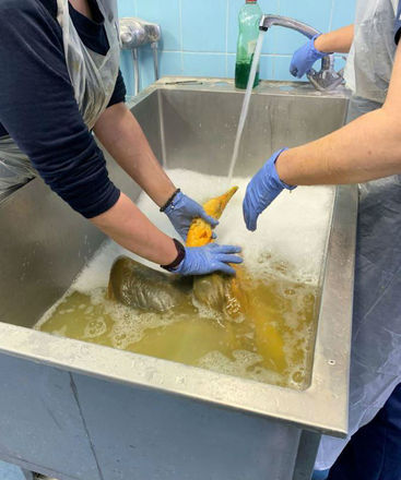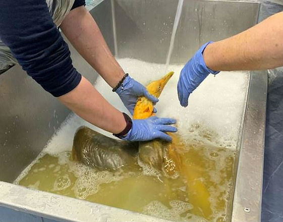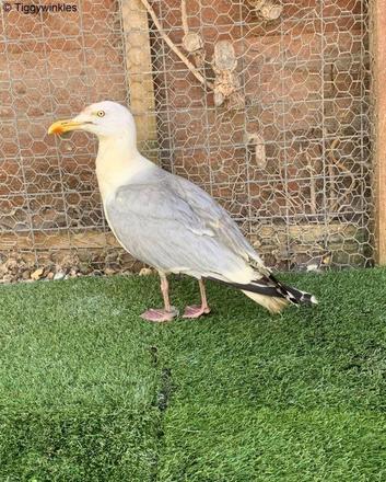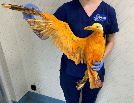 A ave era uma gaivota de arenque comum, mas que, por algum motivo misterioso, havia caído numa panela ou balde de temperos como cúrcuma e curry