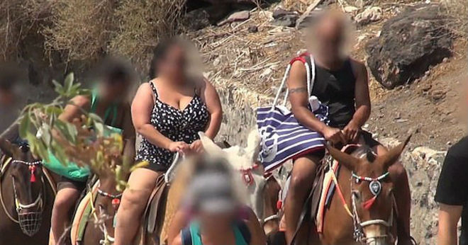 Um vídeo da organização de defesa dos animais PETA, do Reino Unido, mostra que nada mudou desde outubro de 2018, quando noticiamos que turistas obesos estavam fazendo burros sofrer para subir escadas históricas de Santorini, na Grécia