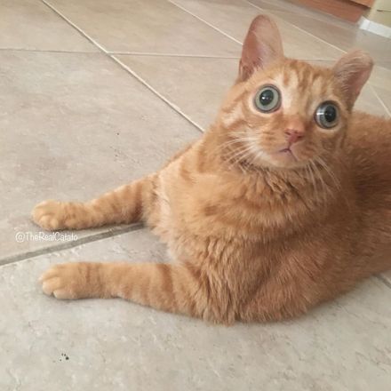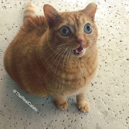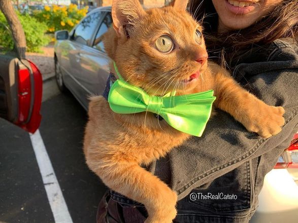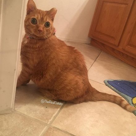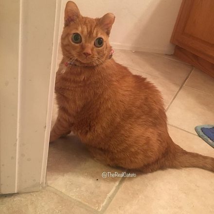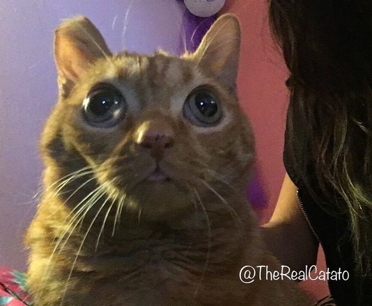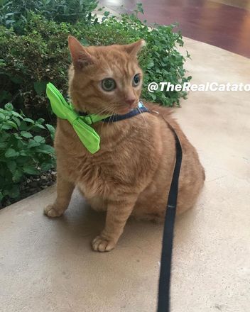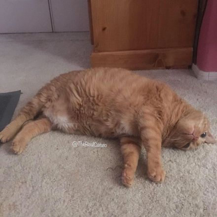 Uma legenda no Instagram (@therealcatato) afirma que ele "gosta de ficar deitado o dia todo em sua cama"