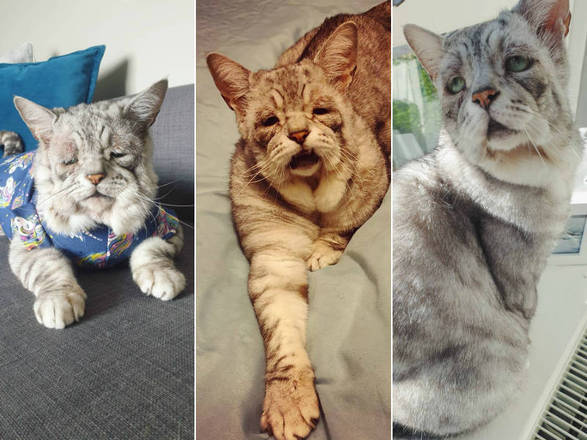 O gato de aparência tristonha é portador da síndrome de Ehlers-Danlos, condição genética que provoca flexibilidade incomum das articulações, pele muito elástica e tecidos frágeis