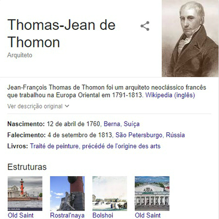 O monumento inaugurado em 2011 pretendia homenagear Jean-François Thomas de Thomon, arquiteto responsável pelo desenho de vários edifícios da cidade, entre os séculos 18 e 19