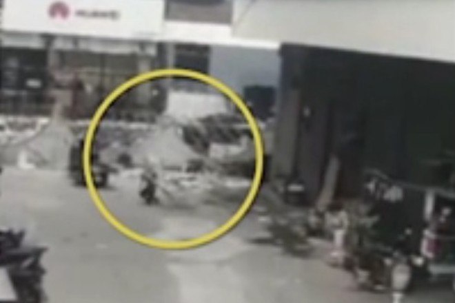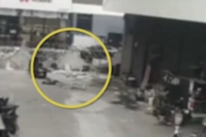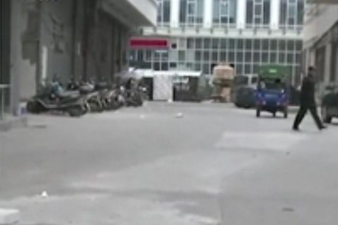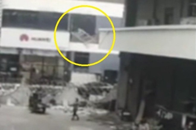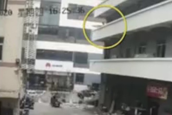 Uma câmera de vigilância flagrou o exato momento em que a estrutura de ferro foi jogada da varanda de um edifício, em Shenzhen, no sul da China