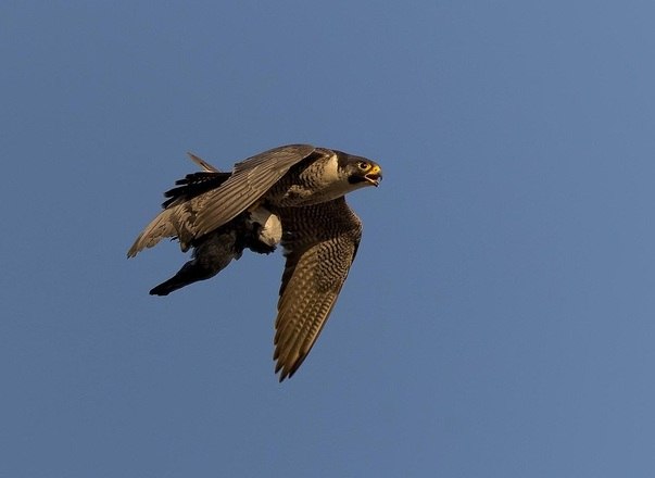 Não está fácil pra ninguém! Um grupo de gaivotas resolveu testar os limites da natureza e atacou um falcão-peregrino que tinha acabado de capturar uma pomba