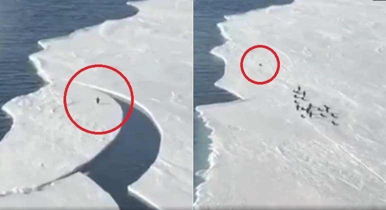 Uma placa de gelo rachou sob as patas de um pinguim, o que poderia tê-lo afastado da colônia da qual fazia parte. No entanto, a ave obstinada mostrou agilidade e ousadia para voltar à costa.