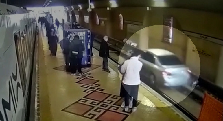 O carro acima invadiu um trecho dos trilhos de bonde que cortam a cidade de Istambul, na Turquia. O incidente foi registrado por câmeras de vigilância do sistema local.