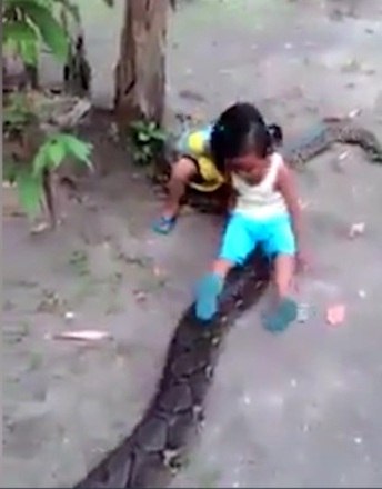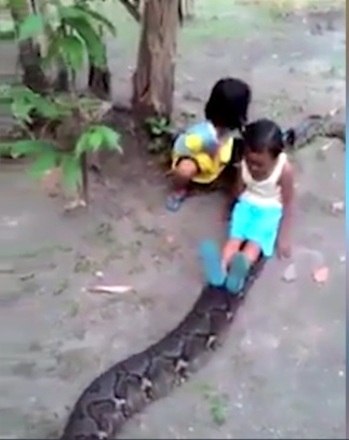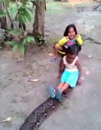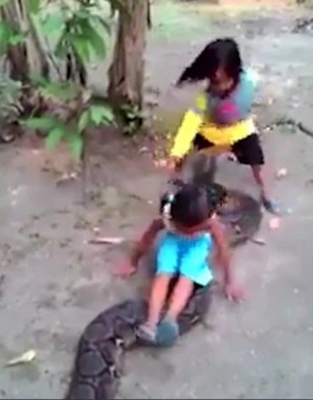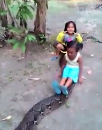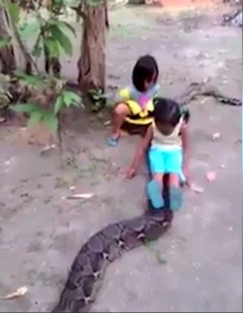 As pessoas ficaram chocadas com a coragem das duas meninas de brincarem com a cobra