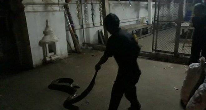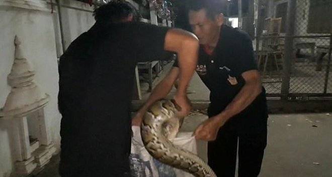 Eles conseguiram prender a cobra. Colocada em um saco, ela foi morta depois