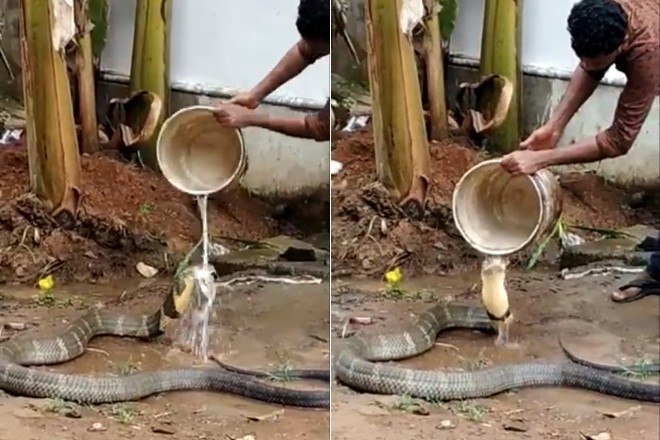 Isso porque o banho é protagonizado por uma cobra-real, conforme explicado em outro tuíte pelo jornalista indiano Rajiv Kunwar Bajaj