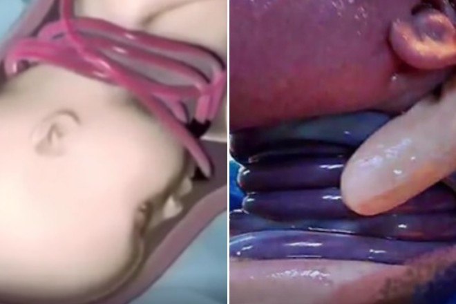 Saiu do útero para o ar livre, onde ficou suspenso por vários segundos