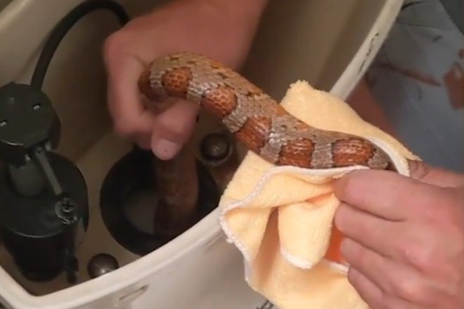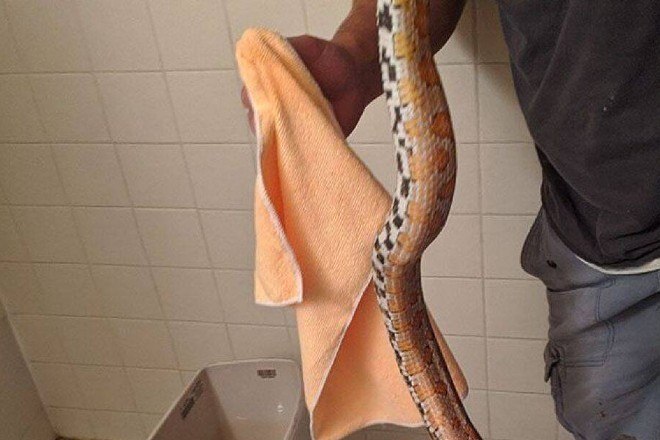 O réptil foi descoberto no local pela moradora Miranda Stewart, que não conseguiu dar a descarga ao usar o banheiro pela manhã: "Me inclinei e uma cabeça de cobra deslizou para cima. Fiquei aterrorizado", lembra