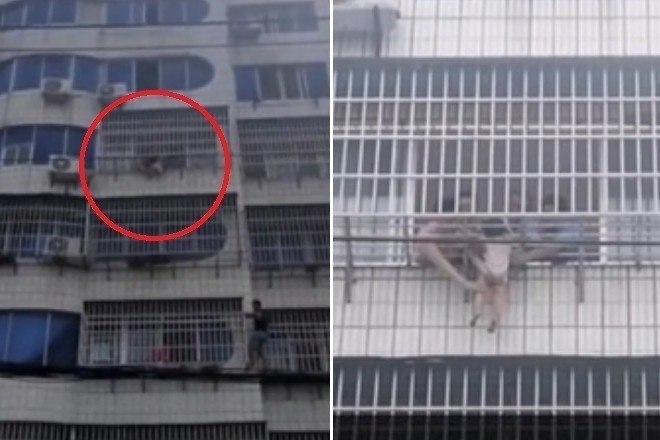Um garotinha de 5 anos ficou pendurada pelo pescoço a cerca de 15 m do chão, em um prédio de Zaoyang, na China