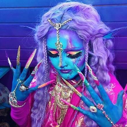 Lhouraii Li é o nome alienígena adotado por essa mulher inglesa, cujo sonho é ter a pele completamente e permanentemente pintada de azul