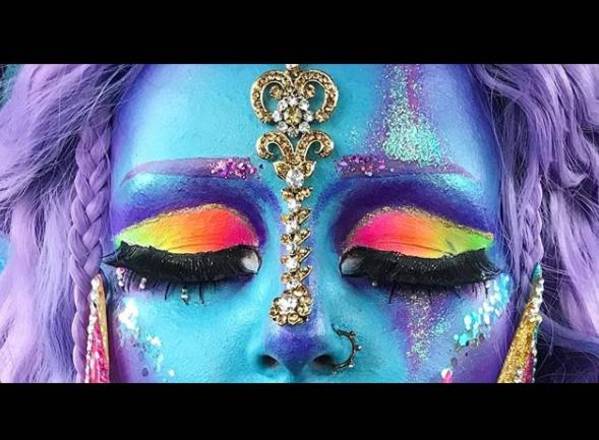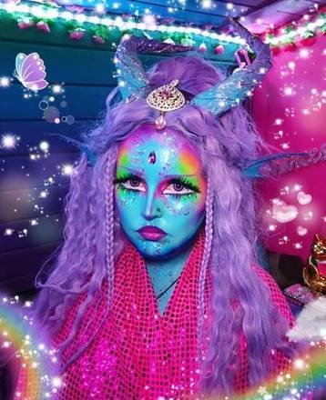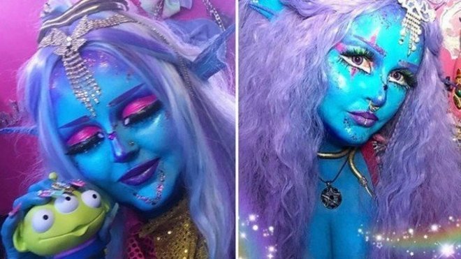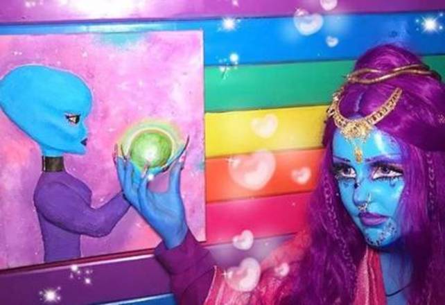 Seu namorado, com quem mantém um relacionamento há 10 anos, também curte se pintar de modo intergaláctico