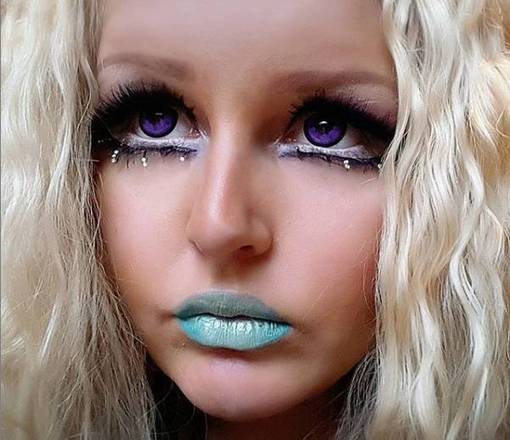 Segundo ela, a inspiração veio de Ethan Bramble, conterrâneo que se autodenomina o "jovem mais modificado do mundo" "Originalmente ia escurecer como os dele, até que o meu tatuador me convenceu a deixá-los azuis para fazer a cor natural dos meu olhos explodir", explica
