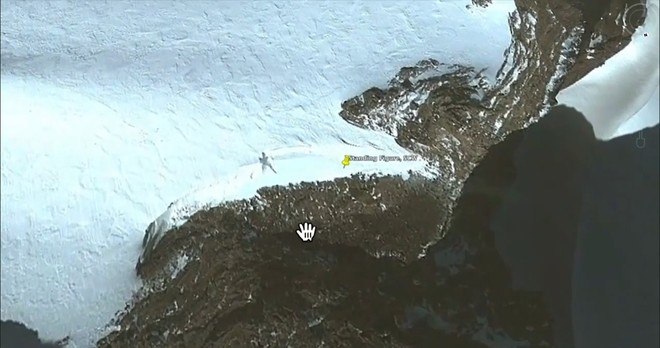 Um teórico da conspiração deixou a comunidade ufóloga em polvorosa após divulgar um vídeo onde mostra o que seria a marca de uma "gigantesca figura", de cerca de 20 metros, em uma geleira da Antártica