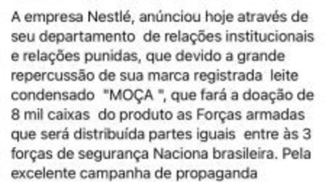 O post A Nestlé doou 8 mil caixas de leite condensado para as Forças Armadas? apareceu primeiro em E-farsas - Desvendando fake news desde 2002!.