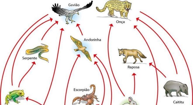Isso quer dizer que um gavião, por exemplo, pode ser um consumidor primário ao se alimentar de um rato ou consumidor secundário ao ingerir o sapo, que se alimentou desse mesmo rato, que por sua vez come folhas.