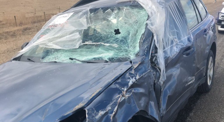 O carro acima acabou rebocado pela Patrulha Rodoviária de Montana, nos EUA, após cruzar diversos estados em condições deploráveis. O absurdo era tamanho, que o motorista utilizava óculos de proteção para conseguir manter o veículo sobre o asfalto.