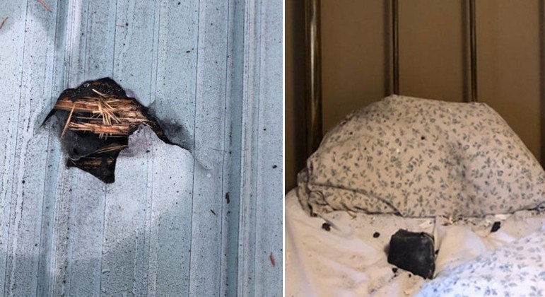 Uma moradora da cidade de Golden, no Canadá, foi acordada com um estrondo no telhado e destroços no rosto. Ao acender a luz do quarto, o motivo da bagunça repousava sobre o travesseiro dela: um meteorito.